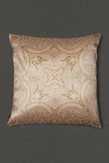 Beige Mysore Silk Embroidered Saadh Cushion With Filler