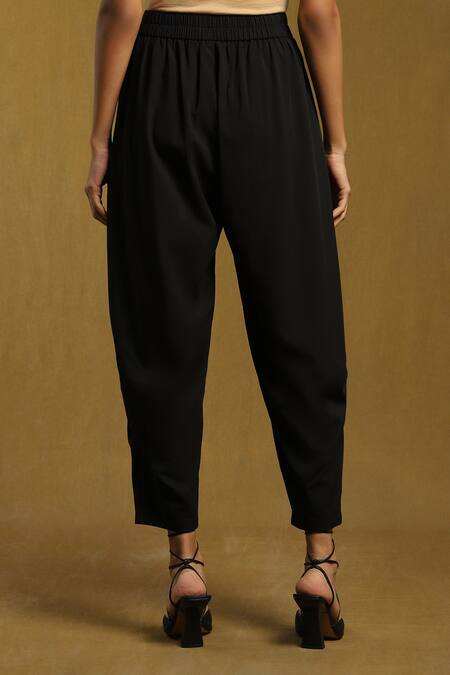 Black dhoti pant featuring pleats in front and a semi elasticated waistband