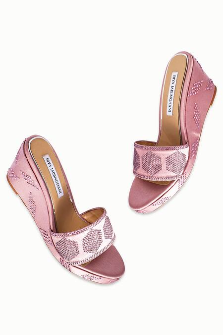 Pink wedges featuring all over crystal embellishments in a geometric pattern
