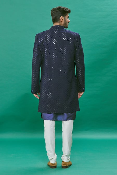 Blue Silk Sequins Embroidered Achkan Set