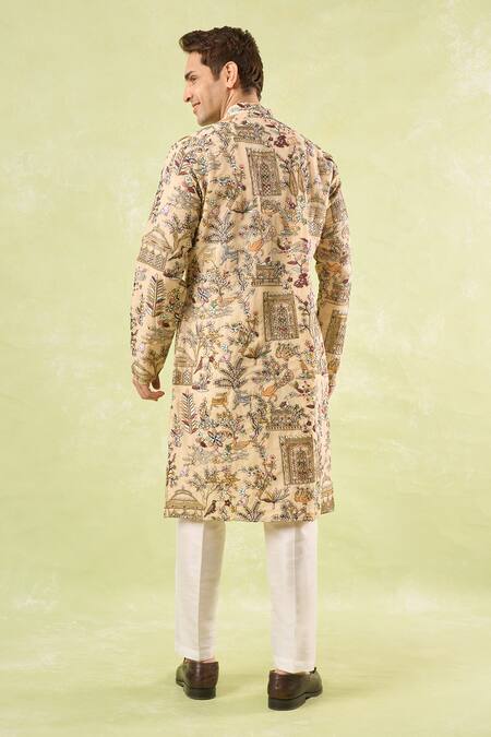 All-over thread motif embroidery on kurta, Dupion silk fabric for pants, Classic kurta silhouette