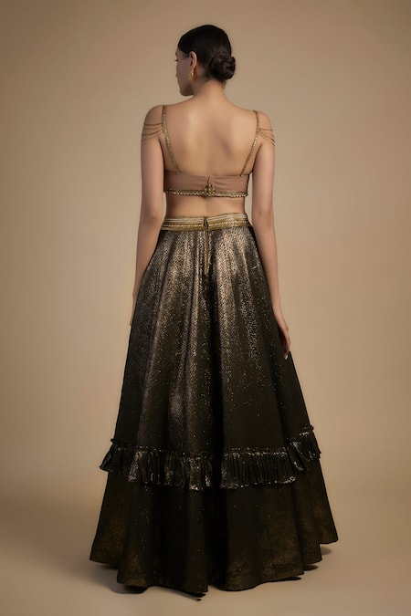 Rocky Star_Gold Polyester, Net Sequins, Crystals, Tribal Blouse And Frilled Lehenga _Online_at_Aza_Fashions