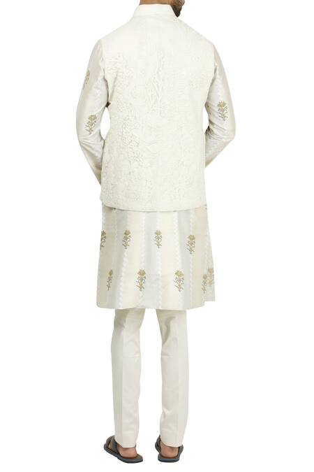 Buy_Rohit Bal_Off White Aari Embroidered Bandi_at_Aza_Fashions