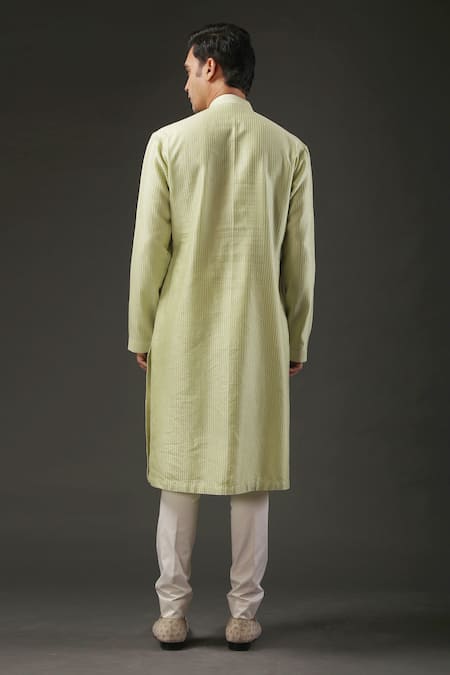 Green Churidar And Lining Cotton, Kurta Chanderi Silk Resham Embroidered Set