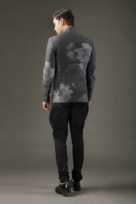 Black Chanderi , Lining Floral Shibori Print Bandhgala