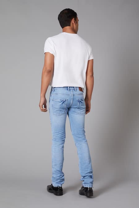 Sky blue regular fitted denim jeans with floral embroidery.