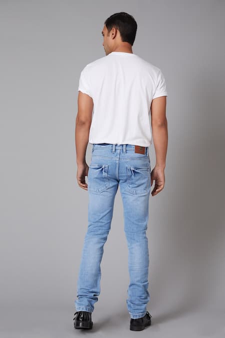 Sky blue regular fitted denim jeans with placement bird embroidery.