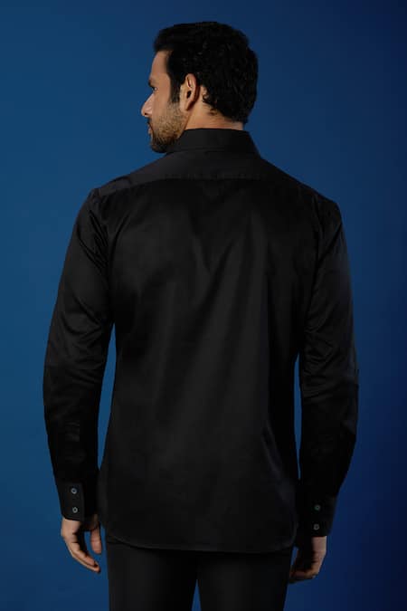Black poplin shirt featuring placed parrots embroidery on the front.