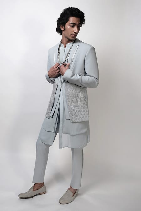 Ice blue double layered kurta featuring pintuck detailing and a mandarin collar