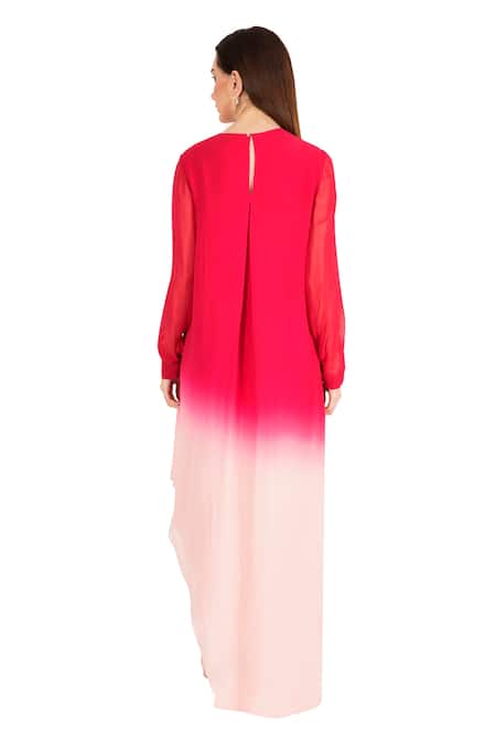 Fuchsia Viscose Georgette Embroidery Sequin Round Asymmetric Ombre Top