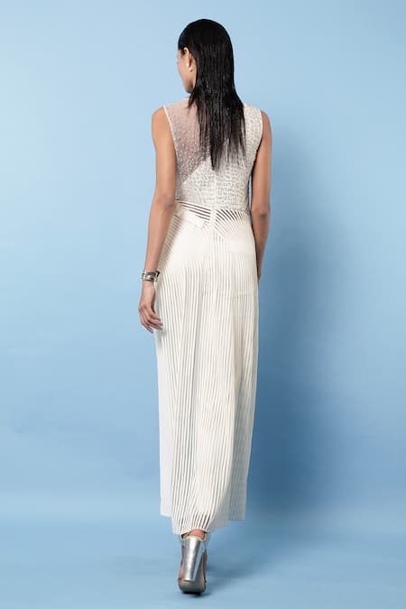 White Tulle Embellishments Bead Round Asymmetric Tape Detailed Top