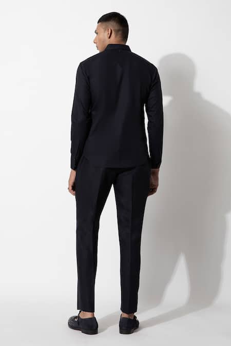 Navy cotton shirt featuring a spread collar and full sleeves