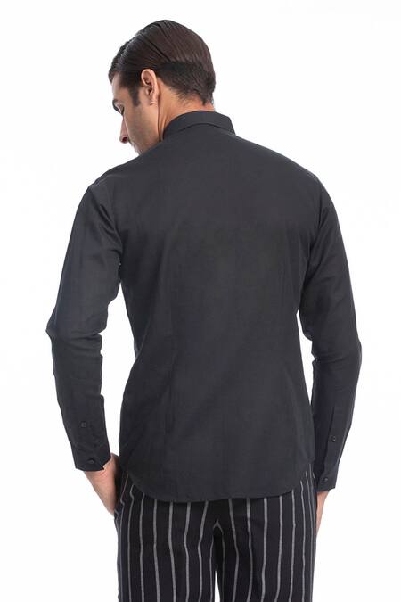 Black shirt featuring full sleeves and thread embroidery on the yoke