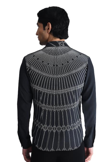 Buy_Rohit Gandhi + Rahul Khanna_Black Silk, Crepe Digital Geometric Print Shirt _Online_at_Aza_Fashions