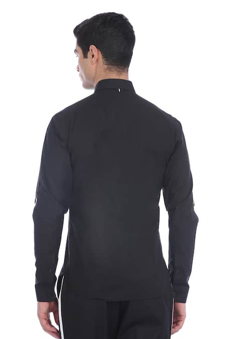 Black shirt featuring hand embellished wing motif embroidery with beaded crystals