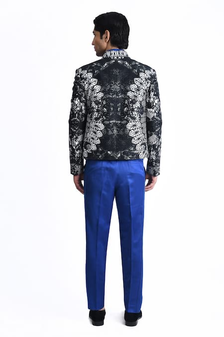 Buy_Rohit Gandhi + Rahul Khanna_Black Silk, Crepe Placement Printed Button Down Shirt _Online_at_Aza_Fashions