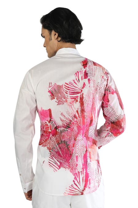 White Cotton Tropical Print Shirt