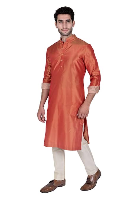 Orange Silk Brocade Kurta Set