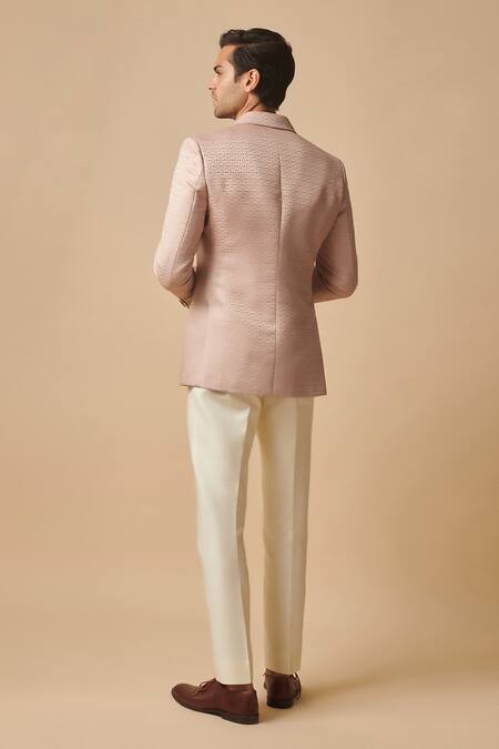 Buy_Philocaly_Pink Wool, Silk Embroidery Rouge Diamond Pattern Tuxedo Blazer_Online_at_Aza_Fashions
