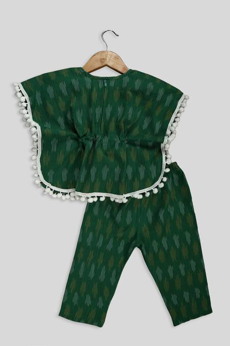 Buy_Champscloset_Green Ikat Cotton Printed Round Neck Kaftan Top And Pant Set_at_Aza_Fashions