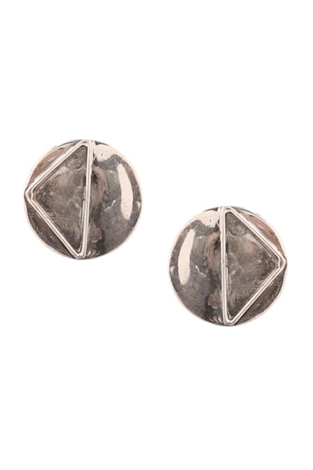 Silver stud earrings featuring a round shape with a triangular engraved motif