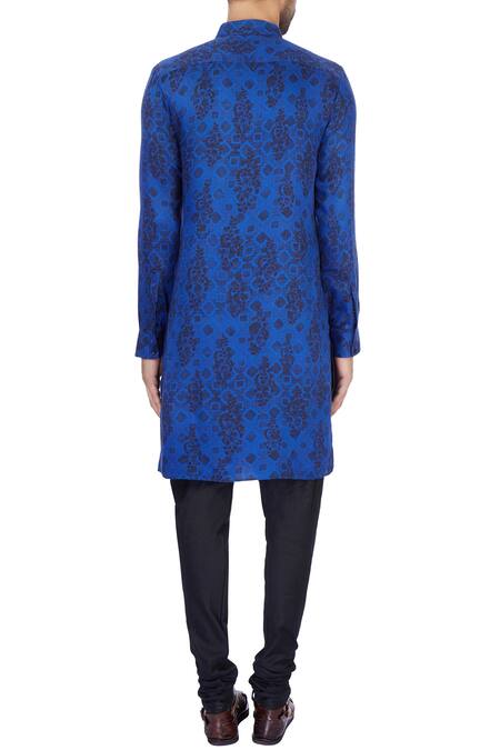 From runways to the silver screen, this royal blue modal satin kurta and churidar set are the clear winner and hence this one will be a great pick for you. It features a printed pattern that lend it a stylish look. The short placket and mandarin collar add to its utility. Made from modal satin, it ensures comfort and durability.
