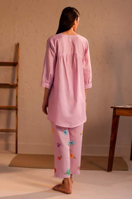 Buy_Roza_Pink Linen Water Color Pancies Floral Pattern Limoncello Tunic  _Online_at_Aza_Fashions