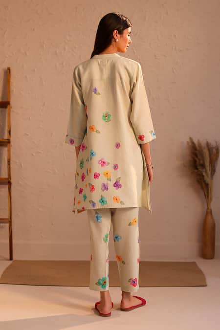 Green Linen Water Color Pancies Floral Limoncello Flower Tunic