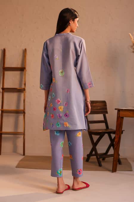 Purple Linen Water Color Pancies Floral Limoncello Flower Tunic
