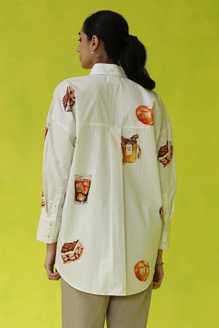 Ivory oversized shirt made of poplin fabric featuring playful food-themed prints