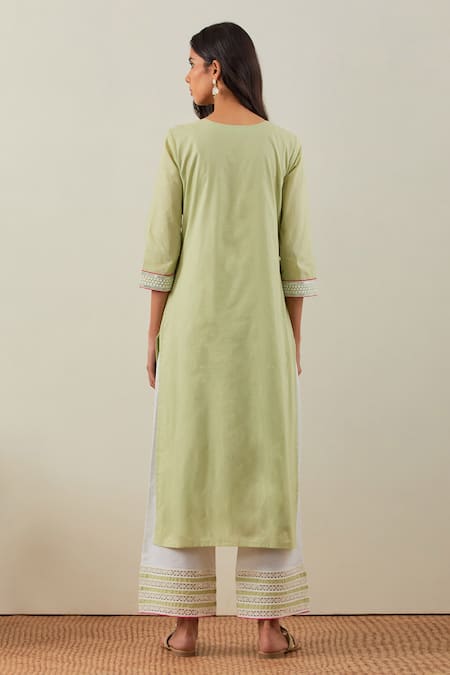 Buy_The Indian Cause_Peach Cotton Embroidery Round Neck Rozana Kurta And Palazzo Set_at_Aza_Fashions