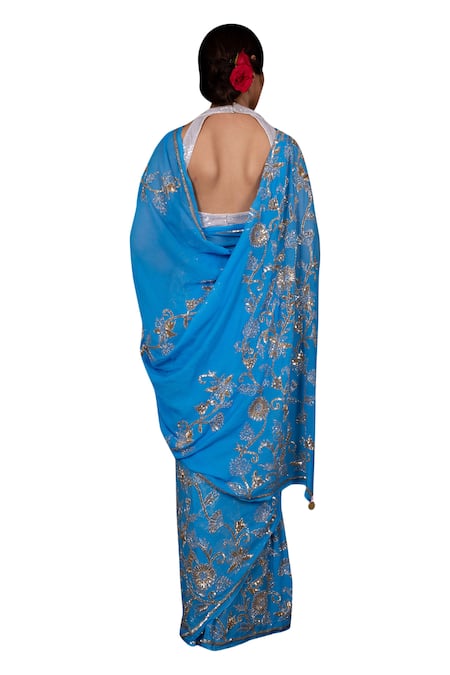 Sky blue saree highlighted with cutdana-sequin hand embroidery. Comes with blouse.
