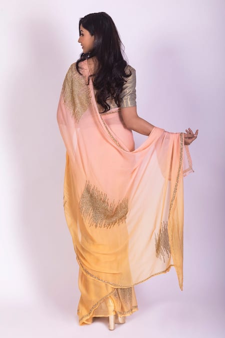Peach and yellow ombre chiffon saree, in sequins embellishments. Comes with blouse.
