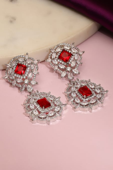 Buy_Ruby Raang_Red Imitation Gemstones Doublet And Ruby Earrings _Online_at_Aza_Fashions