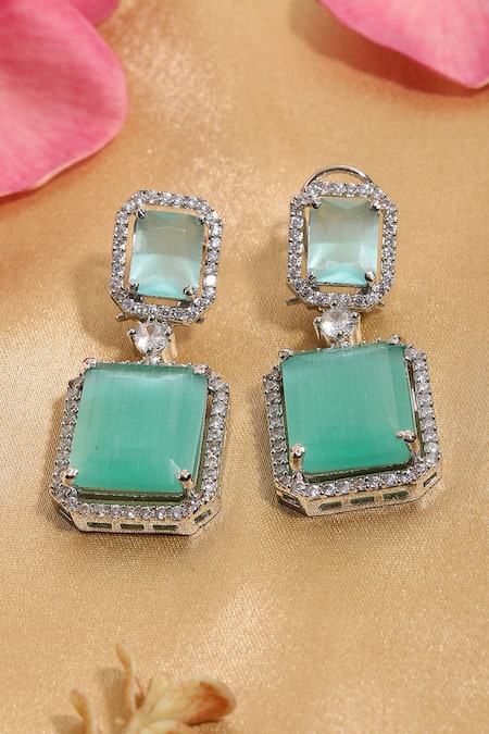 Green doublet earrings featuring a rectangular design with two stone elements