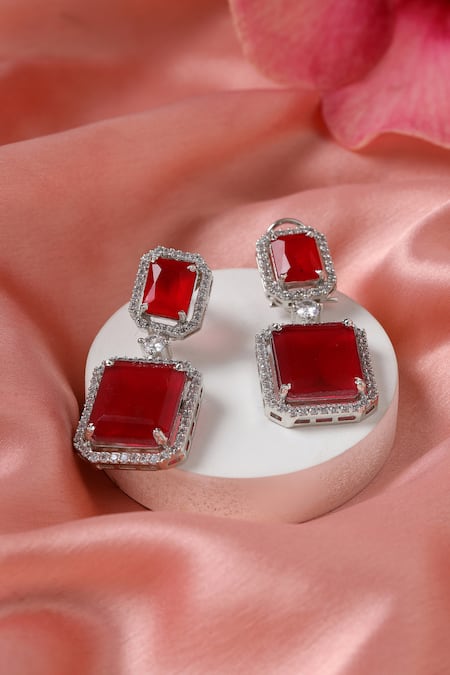 Buy_Ruby Raang_Red Rhinestones Doublet Earrings _Online_at_Aza_Fashions