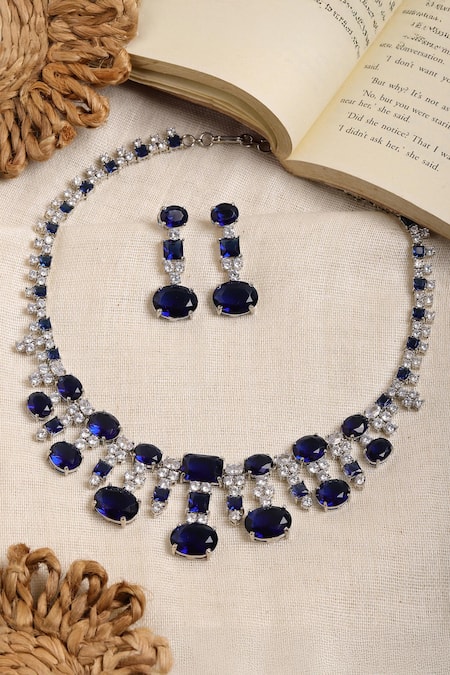 Buy_Ruby Raang_Blue Crystals, Stones Embellished Necklace Set _Online_at_Aza_Fashions
