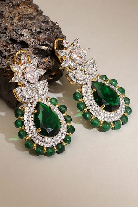 Green Gemstones, Diamonds Emerald Embellished Earrings