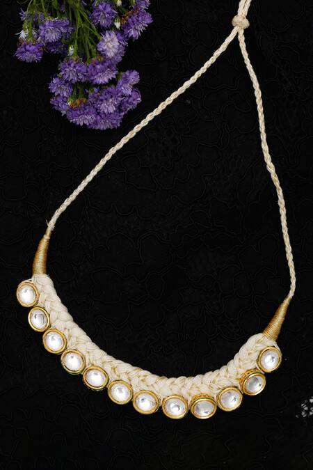 Gold toned braided choker necklace featuring kundan hand embellishments
