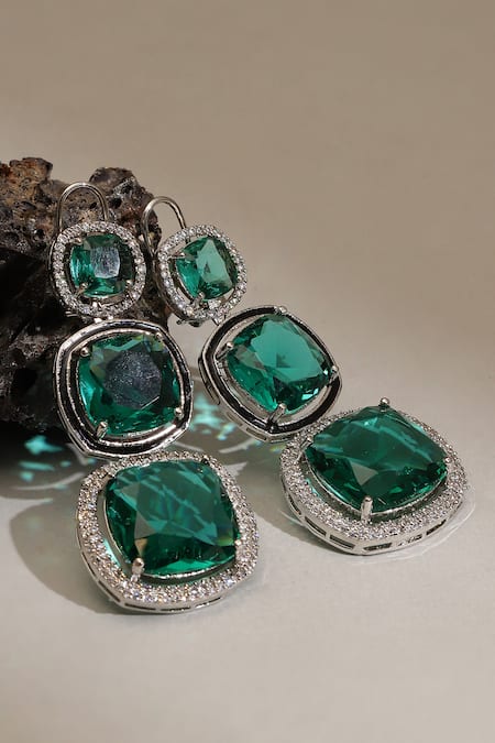 Ruby Raang_Green Crystals Long Emerald Earrings _Online_at_Aza_Fashions