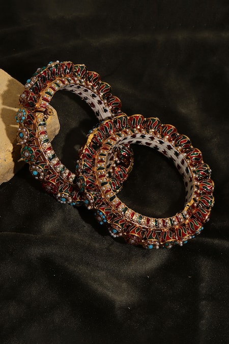 Ruby Raang_Multi Color Metallic Thread, Pearls Meenakari And Embellished Bangles - Set Of 2 _Online_at_Aza_Fashions