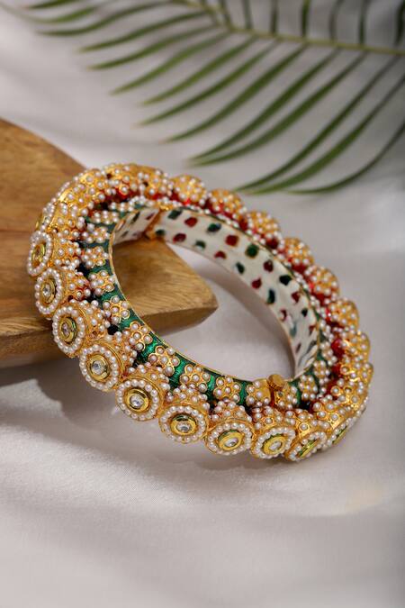 Multi-color bangle featuring gold tone meenakari floral cutwork with jadau highlights