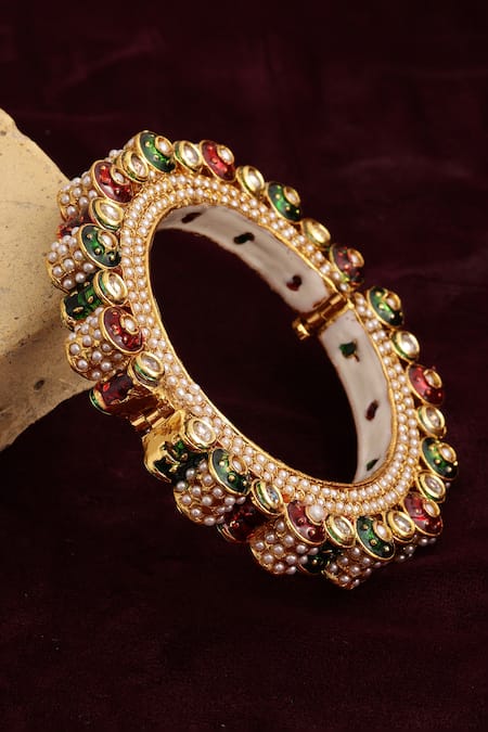 Buy_Ruby Raang_Multi Color Pearls, Meenakari Work And Kundan Embellished Bangle - Single Pc _Online_at_Aza_Fashions