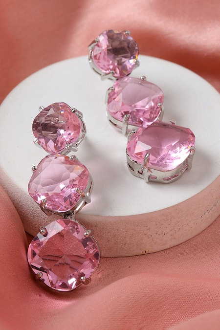 Buy_Ruby Raang_Pink Crystals Designer Earrings _at_Aza_Fashions