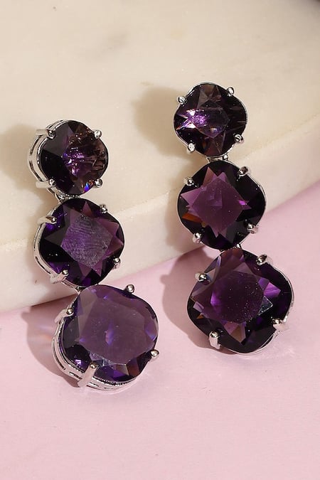 Purple earrings featuring a cascading design with multiple stone embellishments