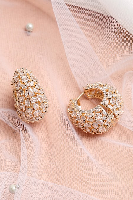 Rose gold toned hoop earrings featuring intricate stone embellishments