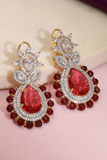Red Gemstones, Crystals Ruby And Diamond Stone Designer Earrings