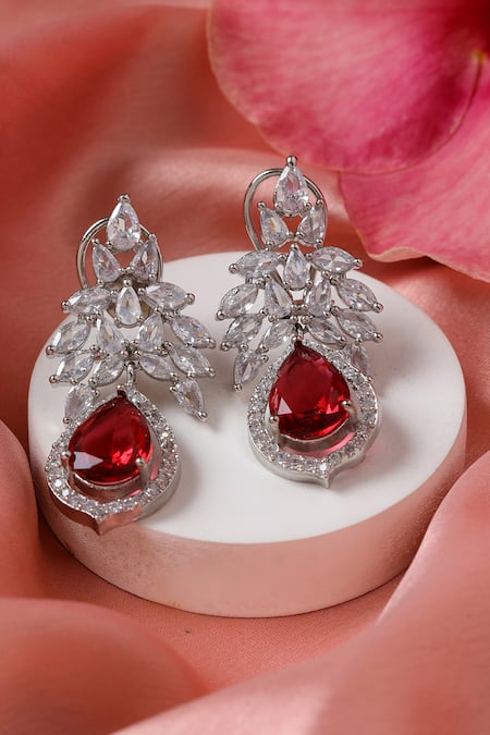 Buy_Ruby Raang_Red Imitation Diamonds Ruby Embellished Earrings _Online_at_Aza_Fashions