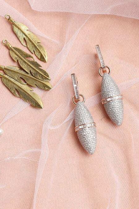 Intricate stone embellishments, Push back clasp for secure wear, Unique elongated design