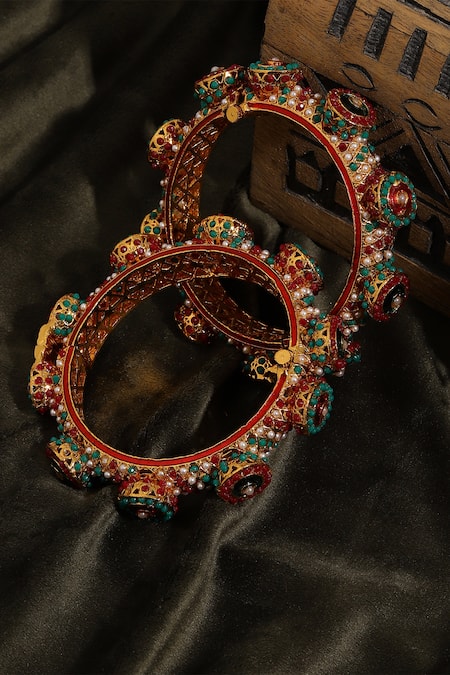 Multi color rajwada kada embellished with kundan, polki, meenakari, semi-precious stones, and pearls